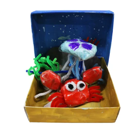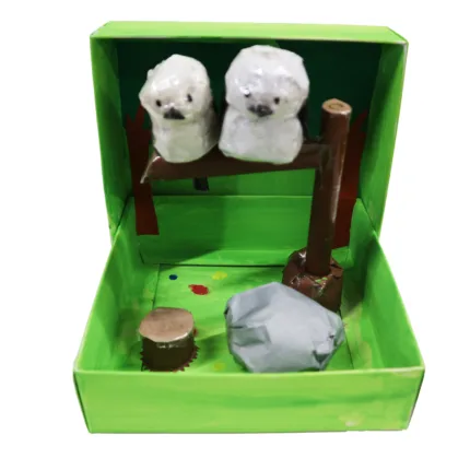 今月は私だけの動物園をテーマにセロハンテープ人形とジオラマづくりをしました。