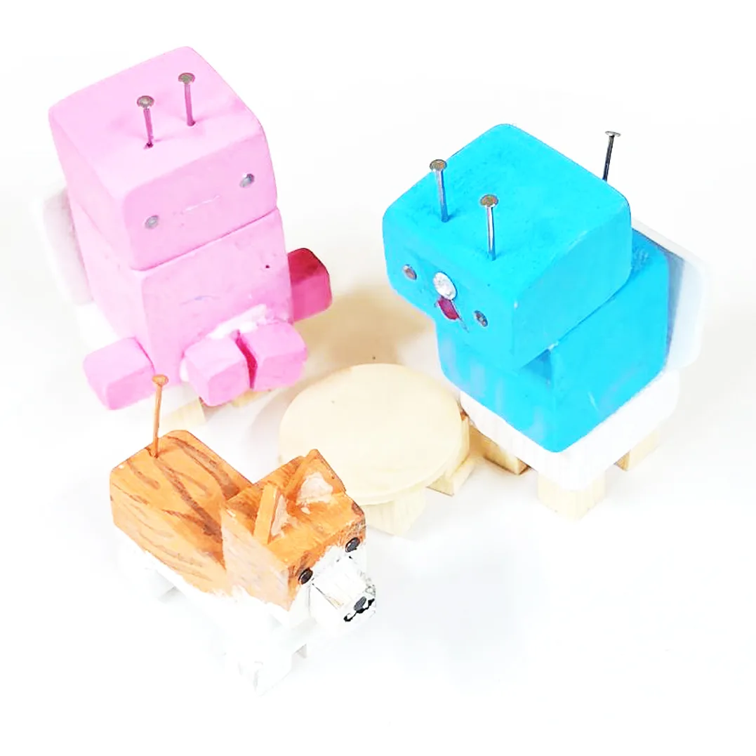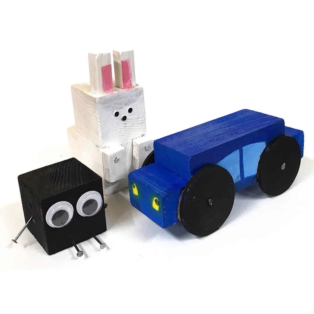 釘の使い方を工夫して触覚にする表現する子や、タイヤの軸として使用したり、家具などを再現したりと、